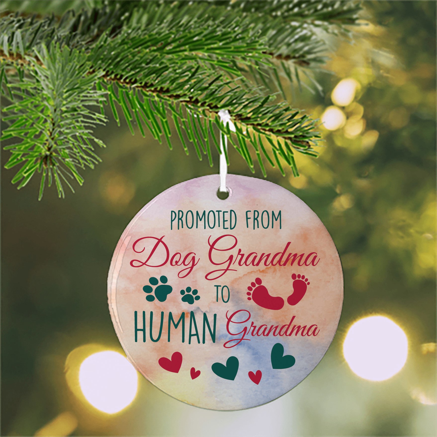 Promoted from Dog Grandma to Human Grandma Christmas Holiday Ornament