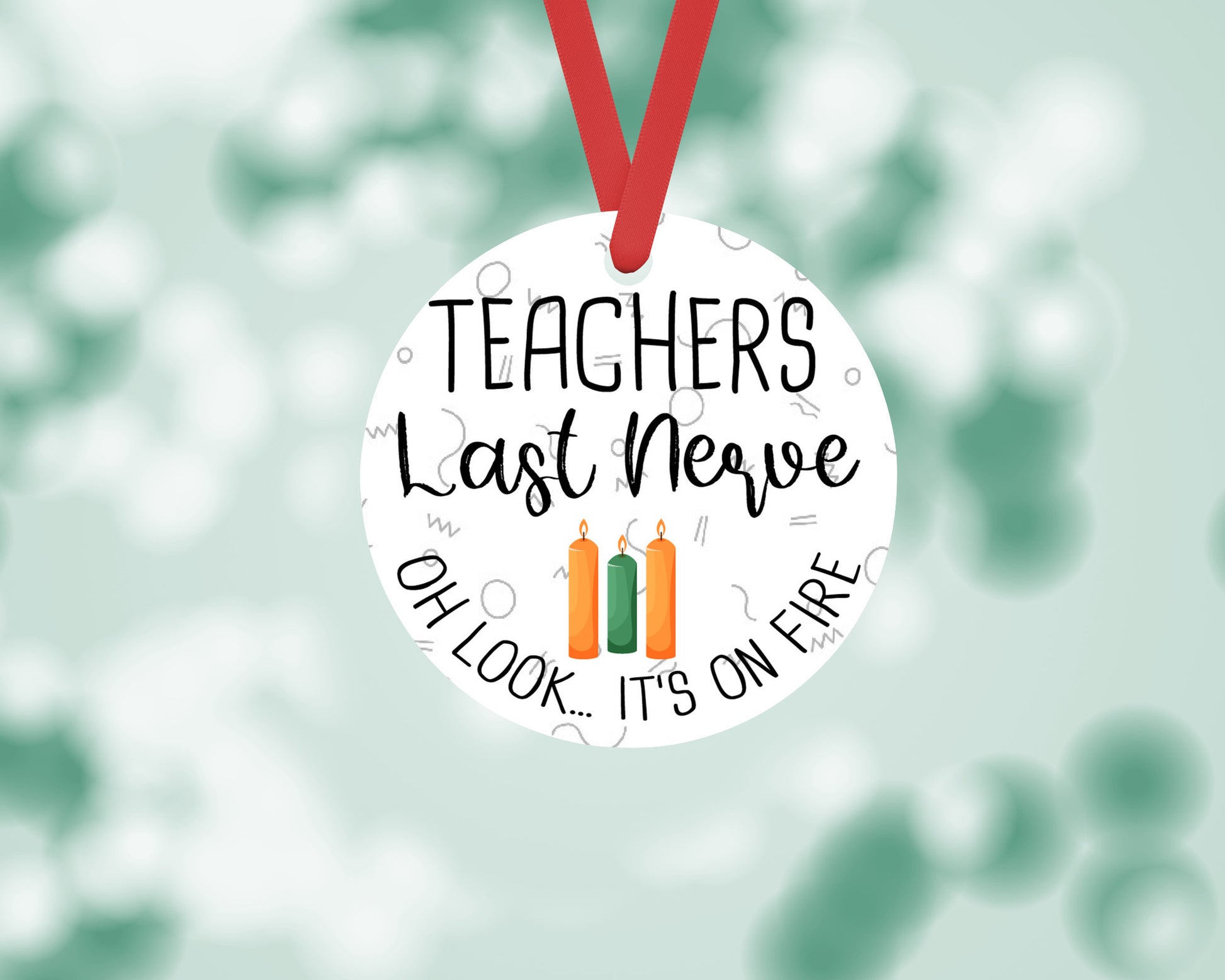 Teachers Last Nerve It's on Fire Christmas Ornament